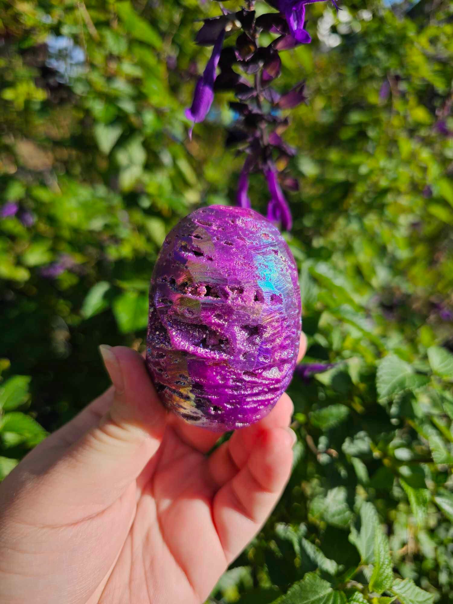 This is an incredible variation of Sphalerite, which has been given an aura coating to add to the incredible beauty of this stone. The aura coating does not have or affect any of the properties of this stone.