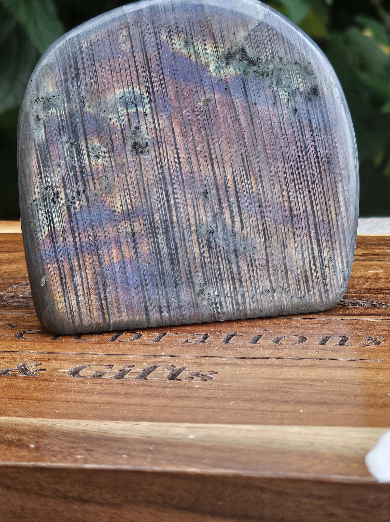 This is an incredible piece of Labradorite which has been carved and polished into the Freeform shape. This piece is filled with purple, pink, yellow and blue hues.