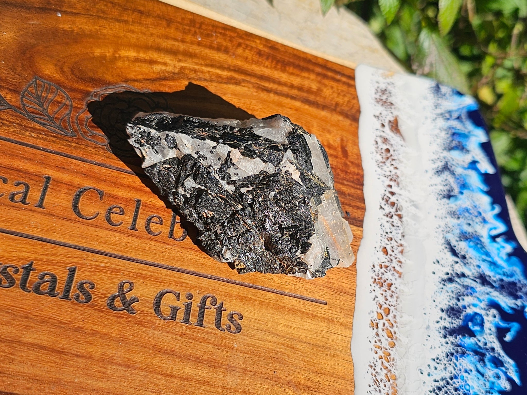 This is an incredible piece of Black Tourmaline in Quartz, which has not been carved or polished. This is Black Tourmaline in Quartz in its most natural state.